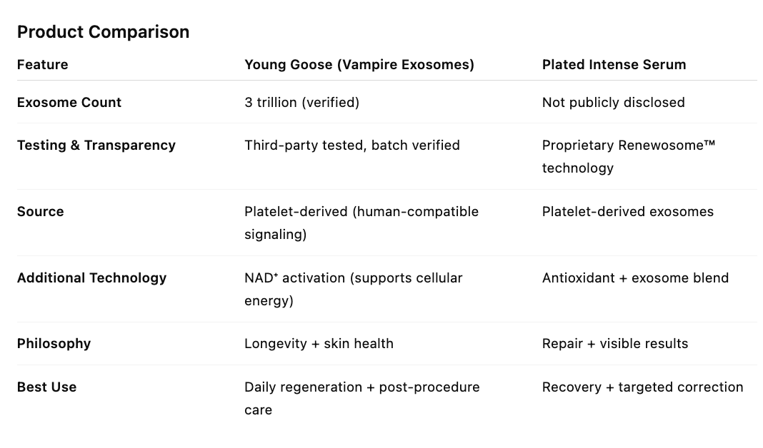 In a category that’s rapidly growing, we made a very intentional choice to bring in Young Goose over other well-known exosome brands like Plated. Here’s why.